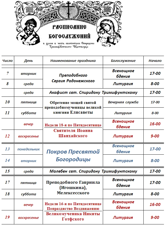 Дорогие братья и сестры, грядет наступление великих праздников, череды их, которые для нашего прихода всегда предваряются одним важным и радостным событием, — нашим престольным днем, памятью великого угодника Божьего и чудотворца, святителя Спиридона Тримифунтского.